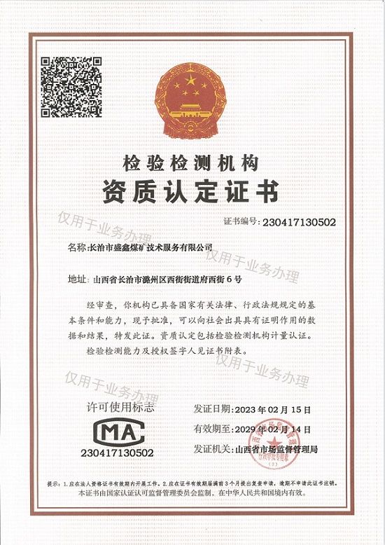 長治市盛鑫煤礦技術服務有限公司成立于2022年12月,隸屬于長治市能源局,由原長治市煤礦技術服務中心(2007年4月成立,長治市能源局直屬事業(yè)單位)轉企改制而成。是長治地區(qū)成立較早、資質(zhì)較全,實力較強的一站式煤礦技術服務機構。經(jīng)營范圍涵蓋煤礦大型設備檢測檢驗,職業(yè)衛(wèi)生檢測評價,環(huán)境檢測,計量技術服務,煤礦安全儀器儀表檢定(校準)、調(diào)校,自救器檢測、礦井瓦斯等級鑒定、礦井通風阻力測定等專業(yè)技術服務。……